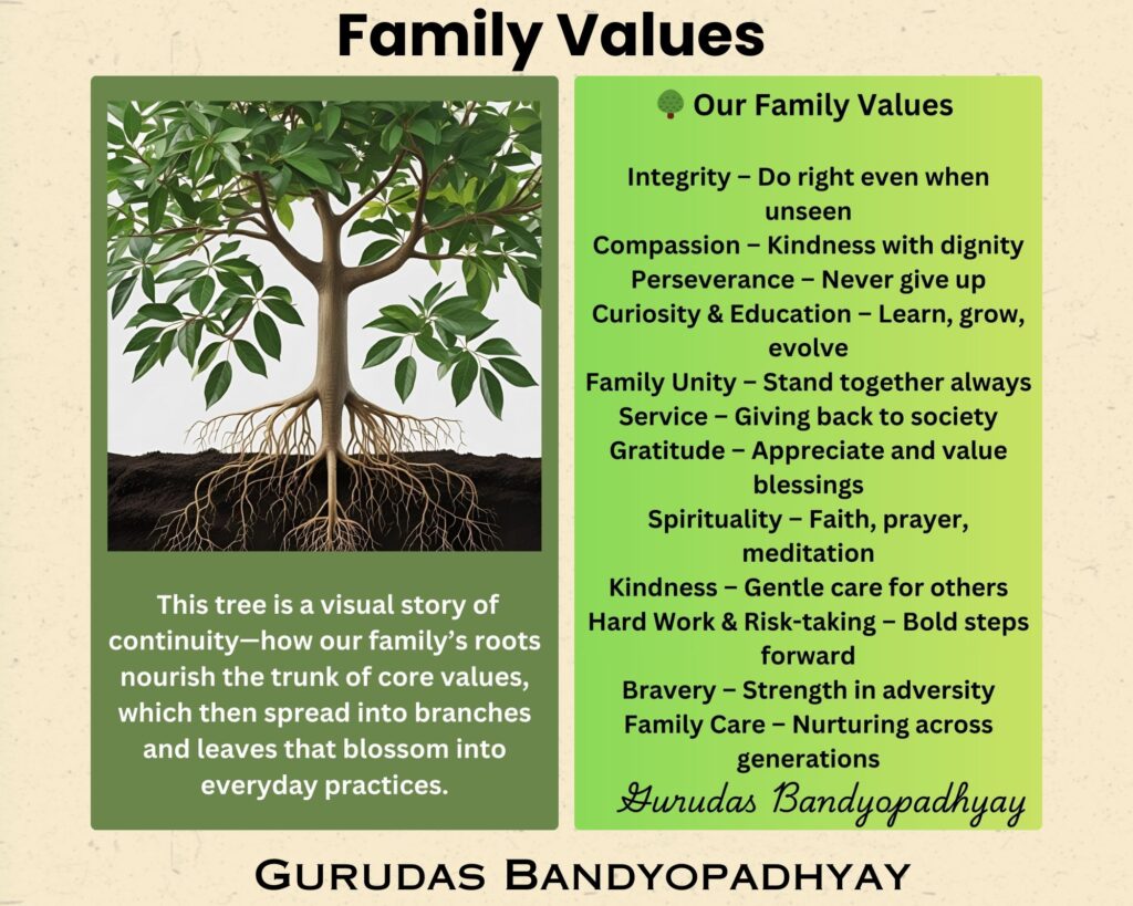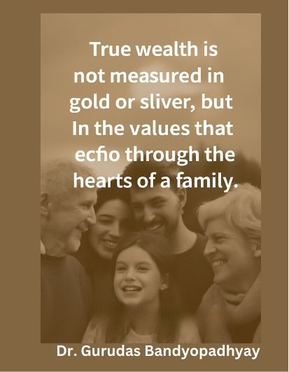 “True wealth is not measured in gold or silver, but in the values that echo through the hearts of a family.” — Dr. Gurudas Bandyopadhyay